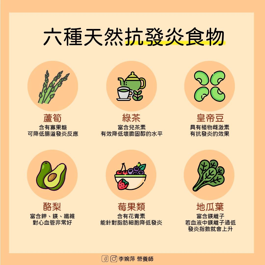 李婉萍營養師提醒,其實只要多攝取以下食材,就能減緩慢性發炎的狀態。