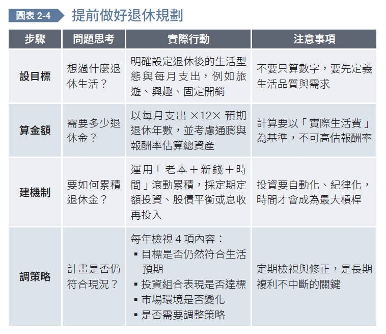 此外,退休規劃是一項持續檢視的工程,建議每年檢查: