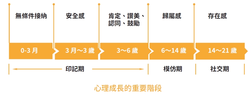前文我們說過,孩子的成長有不同的階段,除了注意不同階段的心理滋養,也要注意不同階段自我價值形成的重點(如下圖所示)。