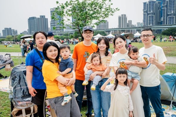 像是陳小姐與兩位大學同學,畢業後第一次相約野餐,就獻給「未來親子家庭野餐日」。3個家庭、3張野餐墊緊緊相連,孩子們很快玩在一起,大人圍坐聊天,氣氛格外熱鬧。其中一個家庭更特地從桃園北上參與活動,只為了與朋友在草地上好好相聚。