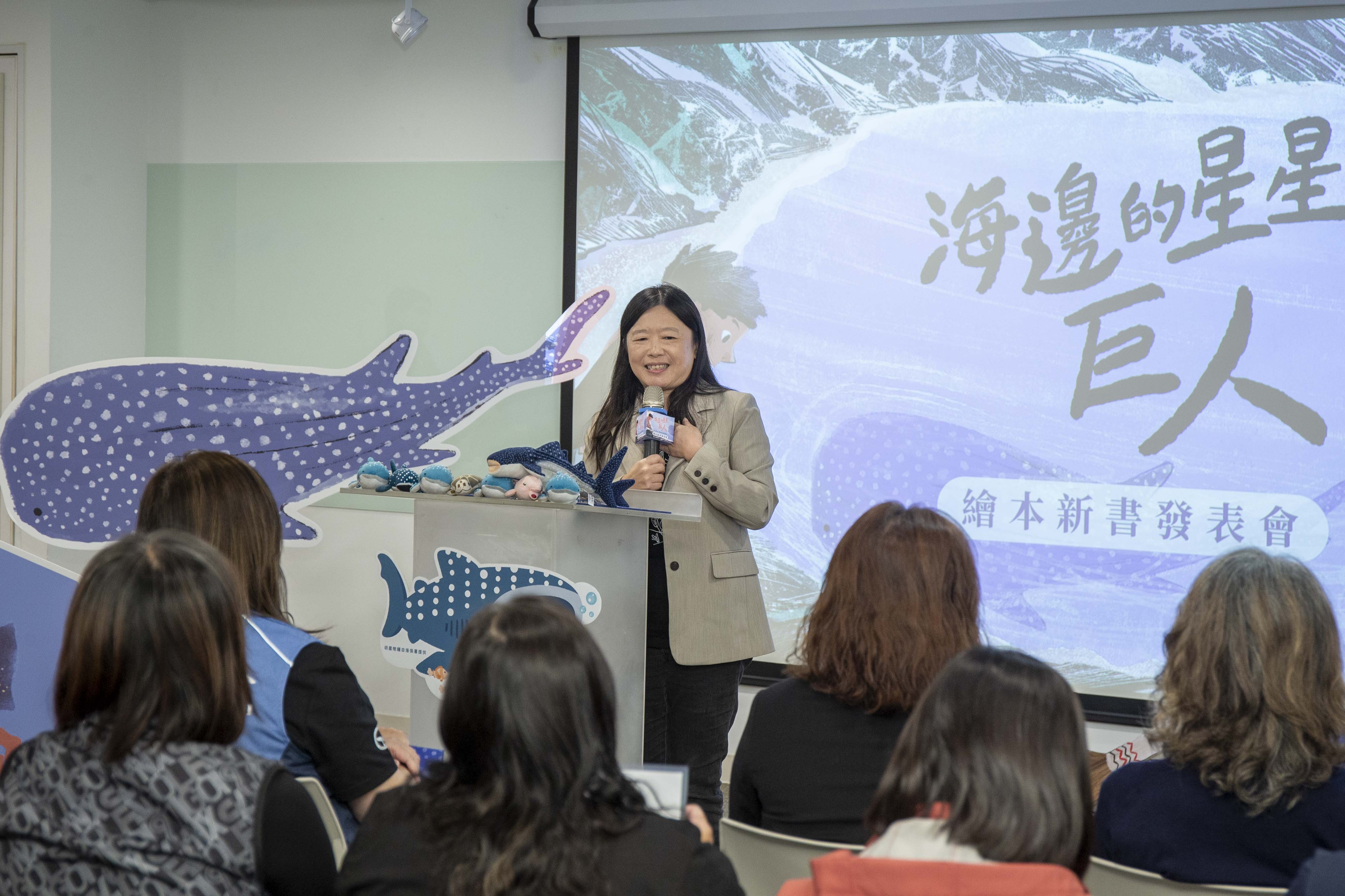 ▲海保署以閱讀扎根海洋生物保育觀念,署長陸曉筠更於新書發表會致詞時提到,希望每個孩子都能找到自己的守護動物。
